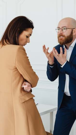 A sharp tone from the speaker, the partner becomes defensive, and the interaction escalates
